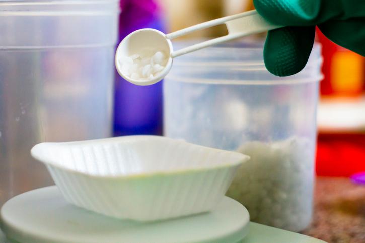 - Remueve la soda cáustica con el agua con la ayuda de un palo o cuchara de plástico.