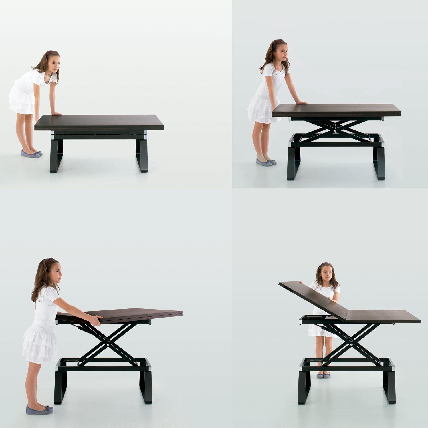 Si te gusta cenar delante de la tele mientras está sentado cómodamente en el sofá, entonces no puedes evitar comprar una mesa elevable. Pero, ¿en qué consisten estos diseños? Se trata de mesas de centro cuyo sobre asciende hasta una posición que nos va a resultar cómoda para hacer diversas tareas como comer o escribir. En la imagen podéis ver el modelo Regolo.