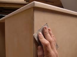 Técnica del decapado. Esta es una técnica que consiste en lijar la superficie del mueble. Debes hacerlo con suavidad, puesto que el efecto que deseamos conseguir es que la parte superior quede rugosa. Para ello, puedes utilizar una lija de grano fino.