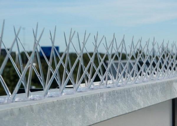 Los pinchos antiposamiento, usados habitualmente para las palomas, son también una solución muy efectiva con un alto porcentaje de éxito. Sin embargo es importante instalarlos correctamente para que funcionen pues en el caso de las golondrinas estas anidan en la pared justo con el techo por encima, motivo por el que los pinchos deben instalarse en esta zona apuntando hacia abajo.
