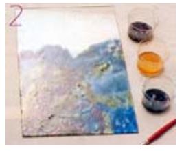 Para proteger el trabajo aplica una capa de barniz brillante con un pincel de pelo suave para que no se marquen las pinceladas. Si se quiere enfatizar el color predominante del trabajo esta capa puede aplicarse con el agregado de un poco de color.