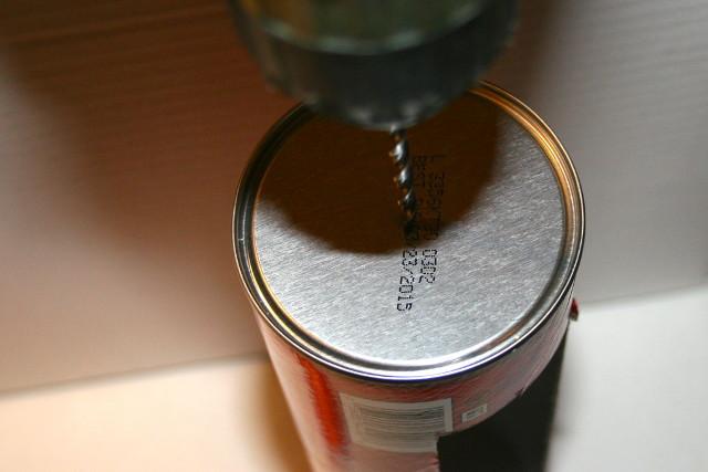 Quita el pincho y coloca la tapa de plástico en el fondo de la lata.