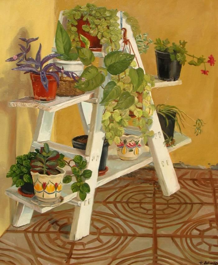 Utiliza tu imaginación y convierte una vieja escalera en un bonito soporte para plantas.