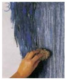Sin dejar secar, arrastra firmemente la pintura con al esponja de acero, siempre en un mismo sentido. La esponja a su paso, irá quitando pintura, produciendo un delicado efecto rayado. Una vez seco el trabajo, protege con 3 manos de barniz al agua.