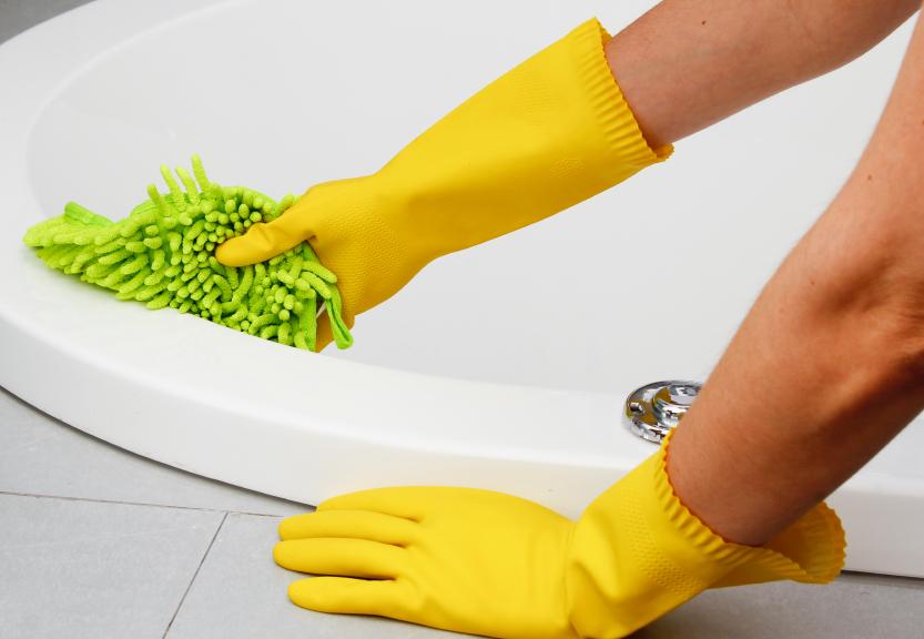 Para los baños, lo mejor es fregar el lavabo y el váter justo antes de ducharte y terminar con la bañera o ducha, al finalizar. Así habrás dejado el baño limpio después de usarlo.