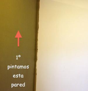 Después de dejar la pared seca procederemos a lijarla suavemente con un papel de lija. La pared queda libre de todo el polvo, lo que hago cuando estoy pintando con 2 colores (2 tonos), es pintar el primer color un poco más de la esquina para asegurarse de que la esquina que bien pintada. Puedes ver en la imagen como queda.