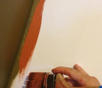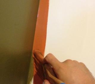 En la segunda pasada por la zona debes coger más firme el pincel y pasarlo cerca de la esquina, verás como la pintura va quedando bien repartida por toda la zona que pasas con el pincel. Si te pasas puedes coger un trapo y quitar la pintura, hazlo rápido antes que la pintura se seque.