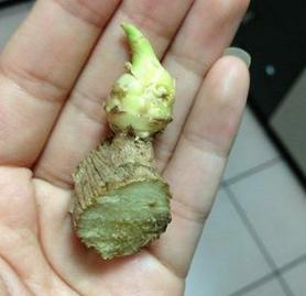 Para plantar el jengibre y que este crezca tenemos que cortar esta capa más dura que recubre el jengibre y exponerla a la tierra. Cortar con un poco (o grande) pedazo de raíz.