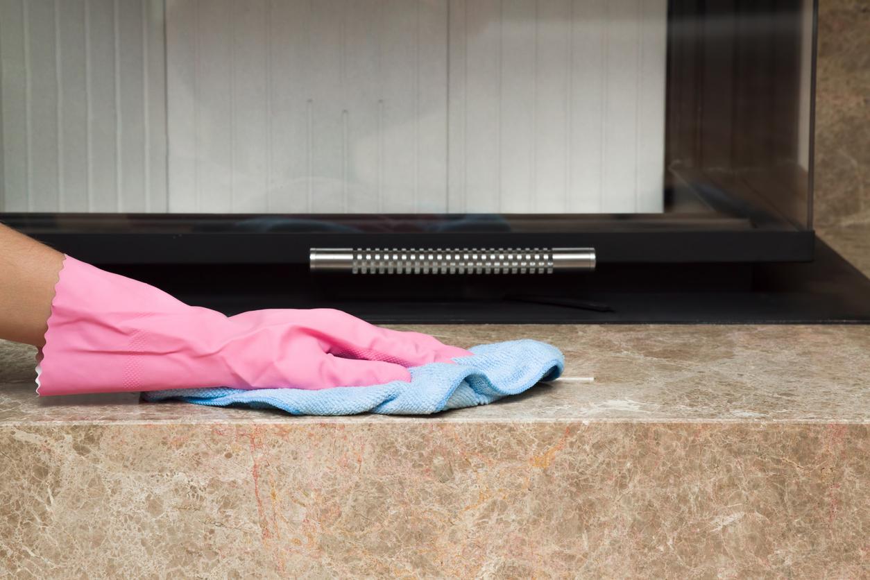 - Cuando el líquido esté tibio, empapa un paño suave y pásalo por toda la superficie del mármol.