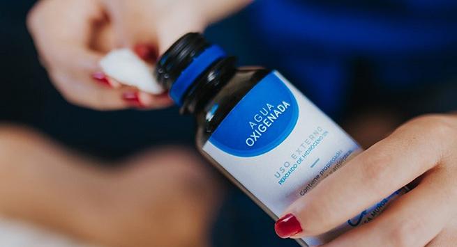 - Una vez humedecida la zona, echa agua oxigenada dando pequeños toquecitos con otro paño.