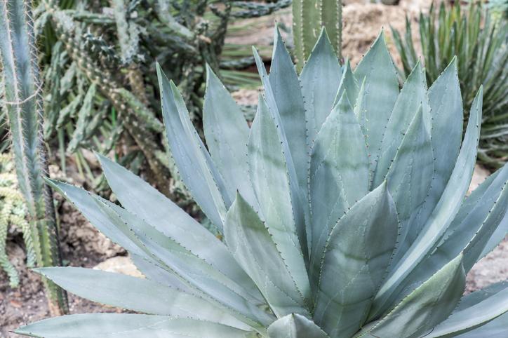 Actualmente agrupada en la familia de las Asparagaceae, el ágave proviene de las regiones áridas del norte de México y el sur de Estados Unidos. Crecen en forma de roseta, con hojas gruesas y carnosas de gran volumen. El ágave se reproduce en semillas y bulbillos, creciendo en climas templados, semisecos y suelos ricos en hierro y basalto. Varias especies de la planta sirven como materia prima en la elaboración de bebidas fermentadas, licores, fibras y edulcorantes. A su vez, el tallo sirve para fabricar vigas, tejas, clavos e instrumentos musicales.