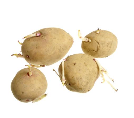 En las patatas, aparecerán brotes que serán las futuras plantas. En cada patata nos aparecerán numerosos brotes, para obtener muchas patatas de pequeño tamaño, dejaremos 5 brotes por patata y eliminaremos el resto, arrancándolos. Si por el contrario, queremos obtener patatas de mayor tamaño, dejaremos 3 brotes (cuanto más separados mejor) por patata.