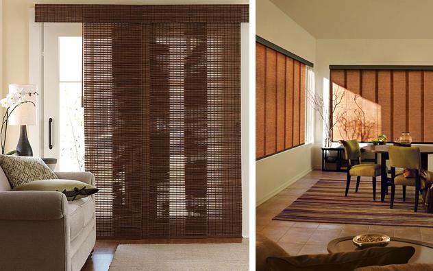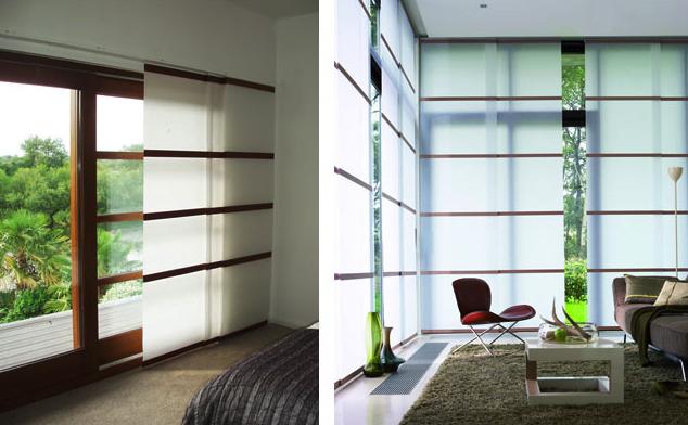 En cuanto al material, suelen quedar mejor los de textil rígido que los de tela demasiado ligera, tanto más cuanto más altos sean los paneles. Si la tela es muy ligera debería llevar un peso fuerte (normalmente una barra) en la zona inferior para que provoque la caída y mantenga rectos los paneles. A veces se colocan en los paneles pequeñas varillas intermedias que además de evocar a los cuadrantes de las puertas japonesas permiten distribuir el peso a lo largo de toda su superficie.