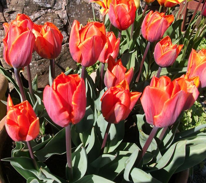 Tulipanes caracterizados por su color rojo intenso con un margen amarillo.