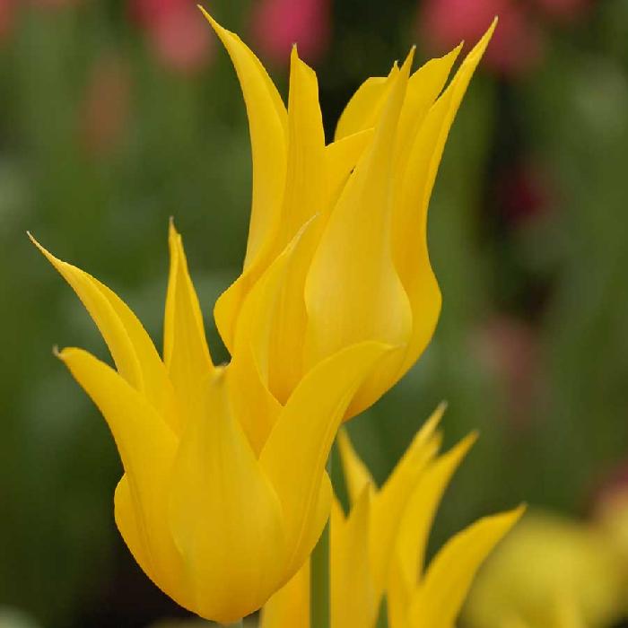Estos tulipanes amarillos también se parecen mucho al lirio de flores, con pétalos ahusados y arqueados hacia arriba.