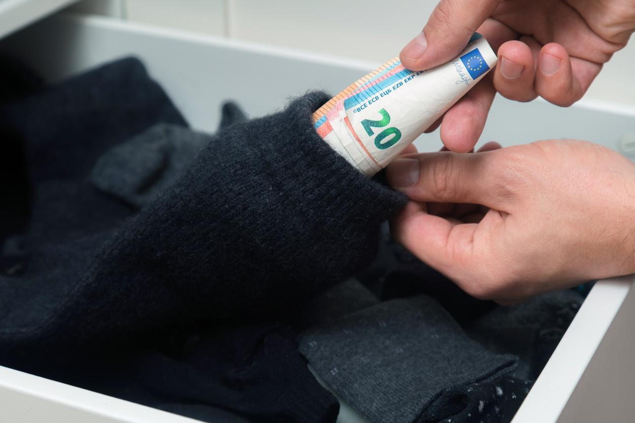 Por ello, es importante guardarlo bien en casa si no lo tienes ingresado en el banco. Un buen lugar es el cajón de los calcetines o medias: puedes enrollar los billetes y meterlos en un calcetín o atarlos con una banda elástica para introducirlos en varias medias o calcetines. Mételos hasta el fondo de cada uno de ellos y tu dinero estará a salvo.