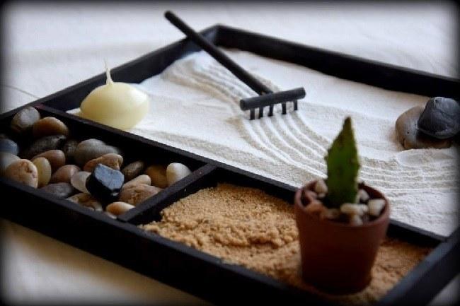 Una de las ideas para decorar con arena es optar por construir jardines zen. Estamos hablando de aquellos espacios compuestos por arena, gravilla y piedras redondas (de río) que se usa para favorecer la serenidad y potenciar nuestra armonía. Mucha gente los considera indispensables en la decoración del hogar, tan aptos para salones como para baños y otros muchos no perdonan unos minutos de relajación tocando el jardín zen, que a pesar de llamarse jardín es un elemento seco.