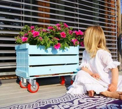 Si tienes un jardín o una terraza y te gusta llenarla de plantas y flores, nada mejor que aprovechar las viejas cajas de frutas para darles una nueva vida como macetero. Dada la utilidad que le vas a dar es recomendable que las pintes de colores vivos y las barnices para darles un toque final brillante y luminoso. En ellas tan sólo deberás poner la arena y plantar las flores que quieras; si quieres que sean macetas móviles tan sólo tendrás que equiparlas con ruedecitas ¡y ya está!