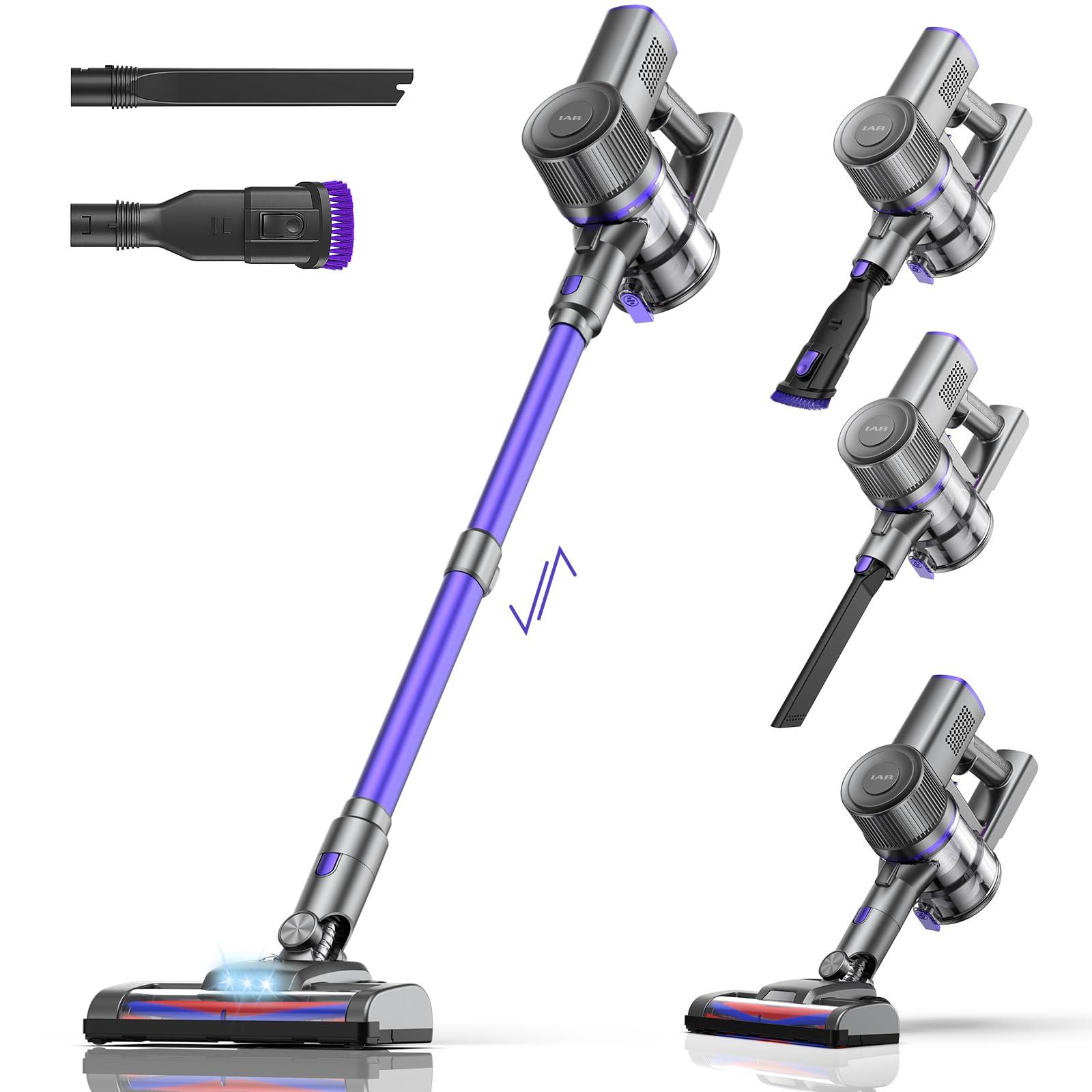 Por otro lado, encontramos esta aspiradora de 33000KPA, una batería de 2500mAh y 3 modos de succión. Cuenta con un tiempo de duración de 18/30/50 minutos y tiene un sistema de 7 capas de filtros herméticos, que incluye un filtro HEPA. Además, tiene también una pantalla táctil inteligente que muestra el nivel de la batería y modo de succión. Su cepillo incorpora un rollo en forma de V para limpiar en profundidad suelos duros, suelos de madera maciza y las alfombras; por otro lado, también cuenta con luces LED que permiten ver los rincones más oscuros a la hora de limpiar.