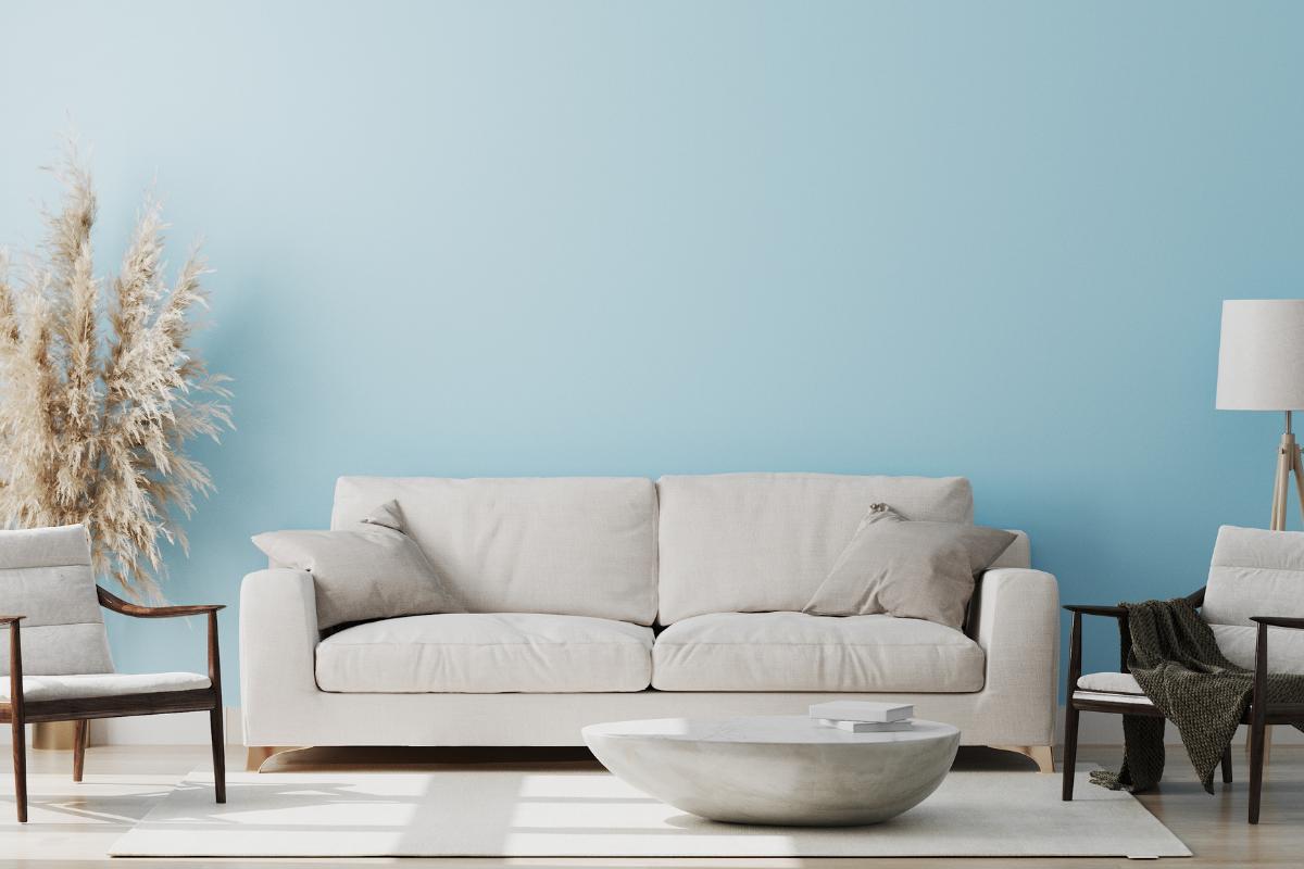 Si quieres que toda la estancia se vea limpia y amplia, el azul claro transmite frescura, serenidad y mucha luminosidad. Es un color ideal para dormitorios, ya que aporta calma, pero también es perfecto para salones pequeños, ya que consigue que se vean más grandes y aireados. Este tono refleja bien la luz y aporta un toque de color suave, sin recargar. Por eso, si buscas inspiración en el azul claro es una opción excelente que combina perfectamente con tonos blancos y grises.