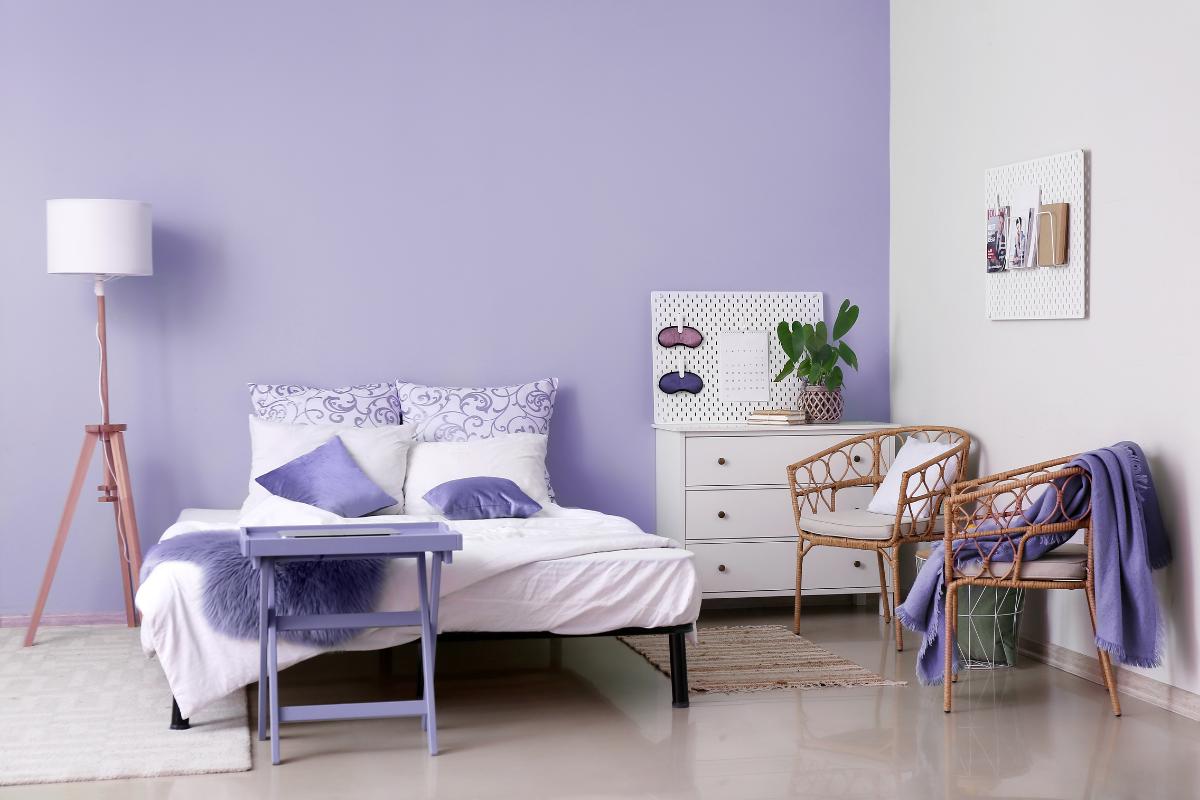 ¿Buscas un ambiente relajado? El lila claro o lavanda suave es un color delicado que aporta frescura y luminosidad, además de un toque original. Se utiliza especialmente en dormitorios y salones pequeños, ya que transmite calma y amplitud. El lila claro es perfecto porque no recarga el espacio y se asocia a un ambiente relajado y abierto. Combinado con blancos y grises, puede transformar por completo una estancia.