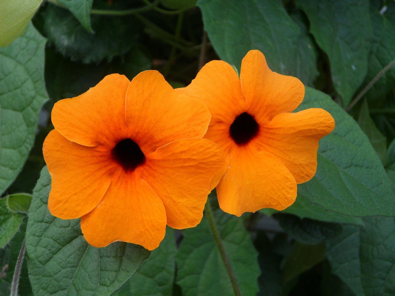 A pesar de lo extraño que suene su nombre, la tunbergia es una planta trepadora muy común que habrás visto en repetidas ocasiones. Su flor suele ser naranja y aguanta durante bastante tiempo. Además, requiere cuidados sencillos y se trata de la planta ideal para dejar trepar entre los huecos de las pérgolas y celosías de tu jardín.