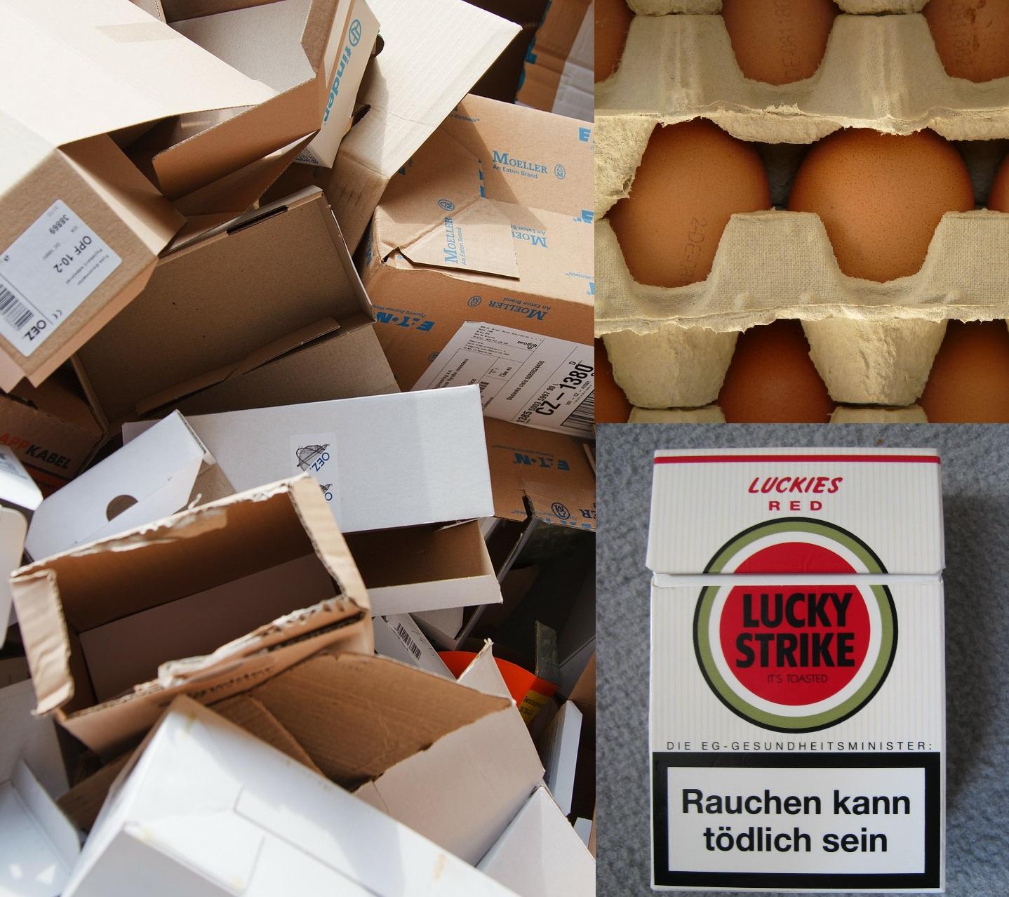 - Envases de alimentos: cereales, galletas, jabón, etc.