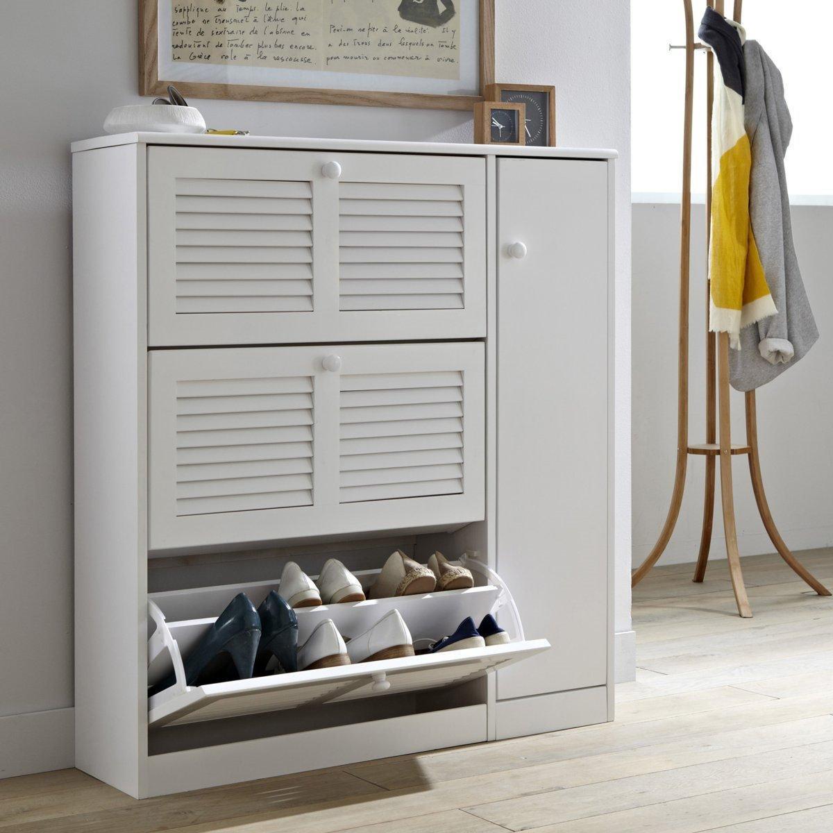 Estos muebles zapateros suelen ser más largos que altos y se usan como mueble de recibidor. Son muebles con puertas cerradas que tienen los estantes inclinados hacia abajo, por lo que la organización de los zapatos es mucho más práctica.