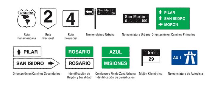 Además de las señales de información, las principales señales de tráfico están divididas en las siguientes tipologías: