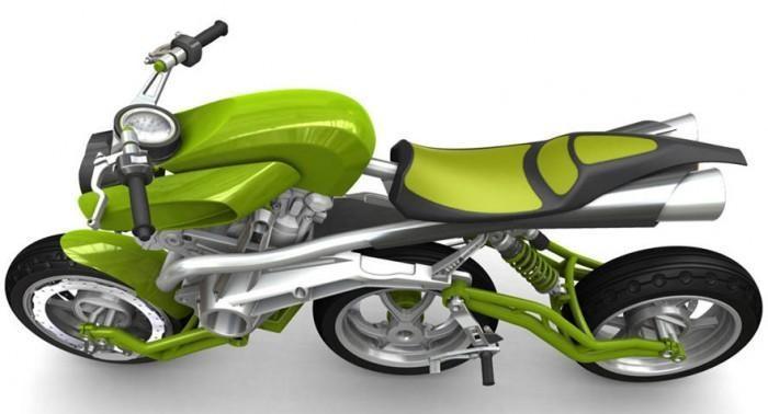 Comenzamos con la Axial 3 Wheels Motorcycle que se monta sobre la base de una DTM Super Duke. El diseño francés le otorga un aire vanguardista y revolucionario. Sus ruedas de 14 pulgadas se colocan en fila, pero la única direccional es la primera. Según dicen, con las tres ruedas se gana en velocidad y estabilidad. Esta moto todavía está en fase de desarrollo.