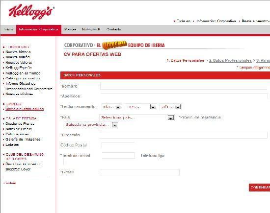 Para poder enviar tu CV y acceder a las ofertas de trabajo de Kellogg's, el paso previo es estar registrado rellenando el siguiente formulario.