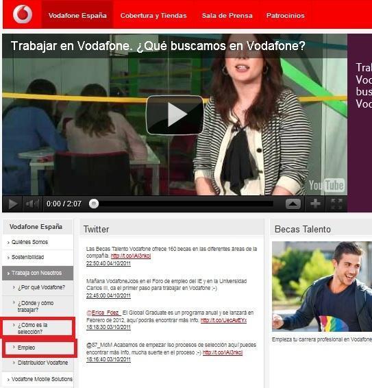 En la parte inferior de la web de Vodafone, encontrarás una serie de enlaces. Busca Trabaja con nosotros dentro de Conócenos y clica.