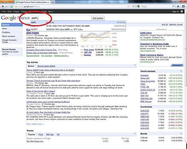 Visita alguna página web relacionada con la bolsa de valores; por ejemplo: www.googlefinance.com, http://finance.yahoo.com/, entre otras.