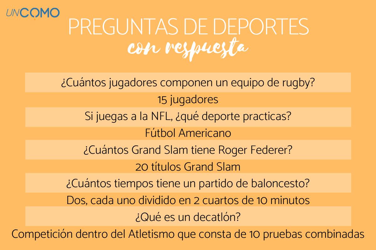 Tanto si buscas preguntas sobre deportes para niños como si quieres jugar con amigos o con familiares, estas preguntas curiosas de deporte te encantarán. Estas son las preguntas y respuestas de deportes curiosas que te proponemos desde unCOMO: