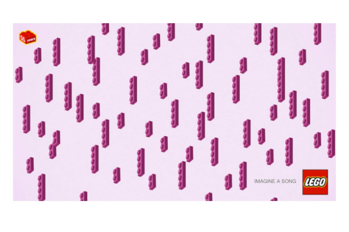 Esta imagen la creó LEGO para celebrar el 55 aniversario del cantante que interpreta la canción escondida en ella. Son fichas lilas de diferentes tamaños que caen del cielo. ¿Sabes cuál es el título de la canción?