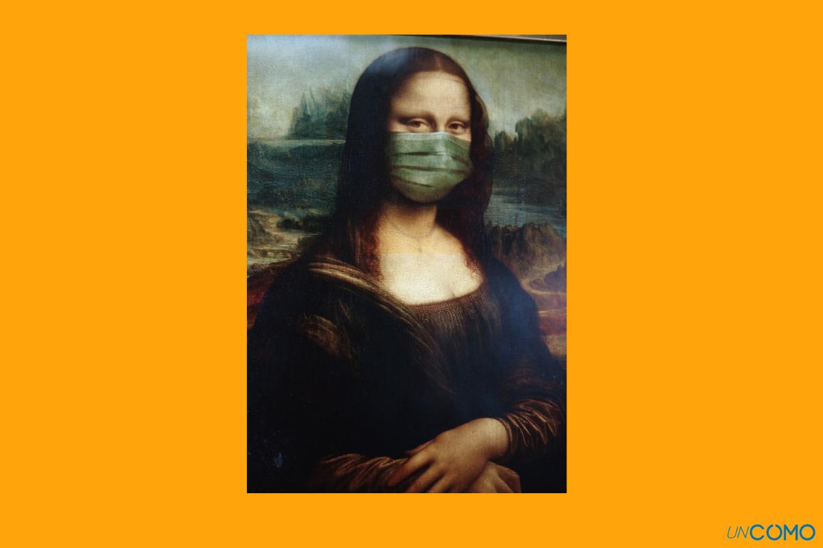 Respuesta: en el cuadro original, Mona Lisa no lleva colgante, obviamente tampoco mascarilla y, además, la imagen está enfocada del revés.