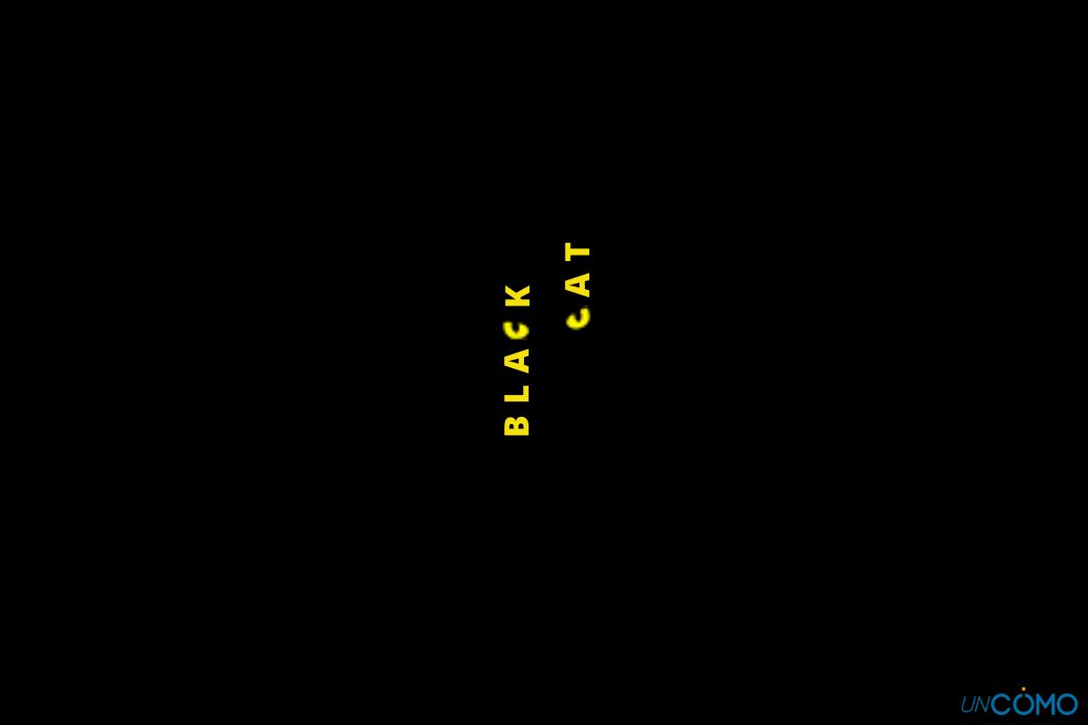 En una imagen de fondo negro, se encuentra un gato. En vertical y de color amarillo, se pueden leer las palabras "black cat". Dispones de 5 segundos para hallar el gato.
