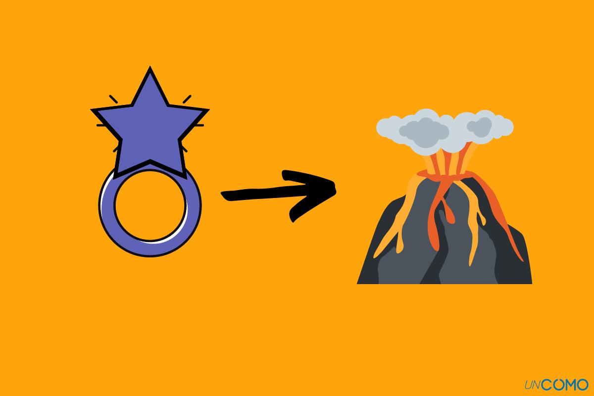 En una imagen se visualiza un anillo con una estrella en la parte superior, una flecha en dirección a la derecha y un volcán humeante. ¿A qué película te recuerda?