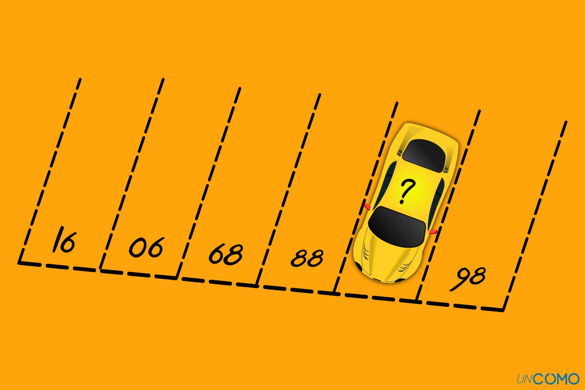 En la imagen siguiente, hay una serie de números colocados en aparcamientos. Un coche está aparcado en uno de ellos, pero tapa el número de ese aparcamiento. ¿En qué número está aparcado?