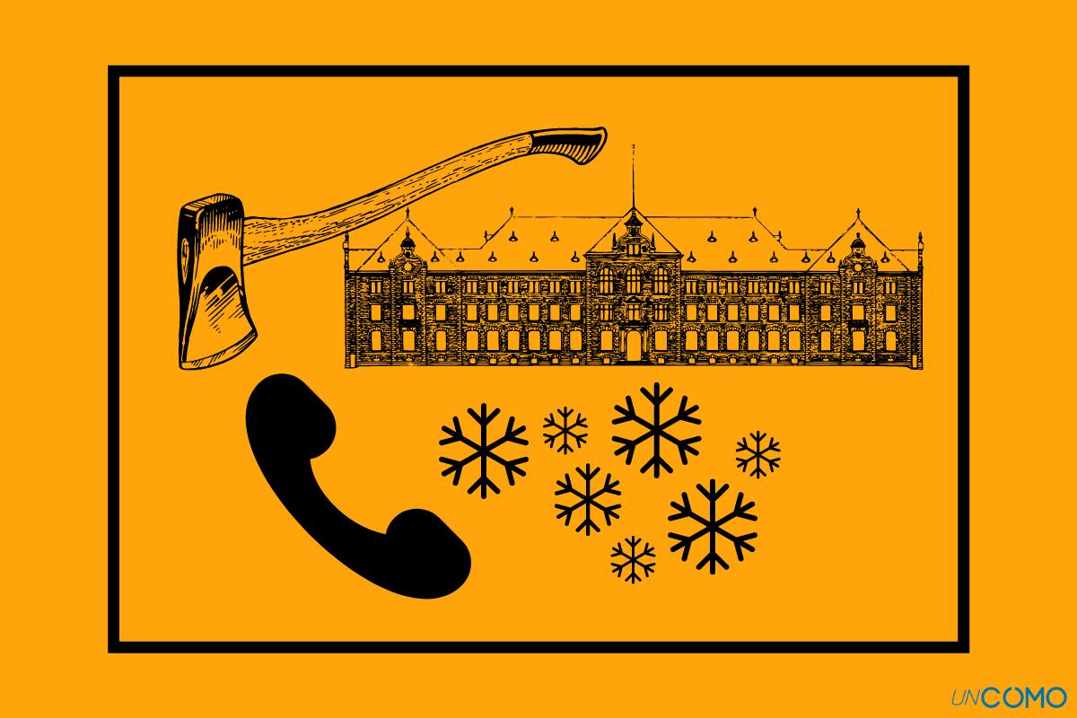 En una imagen se pueden ver una serie de símbolos que ayudan a identificar el título de una película. Los símbolos son una mansión, un teléfono, un hacha y nieve.
