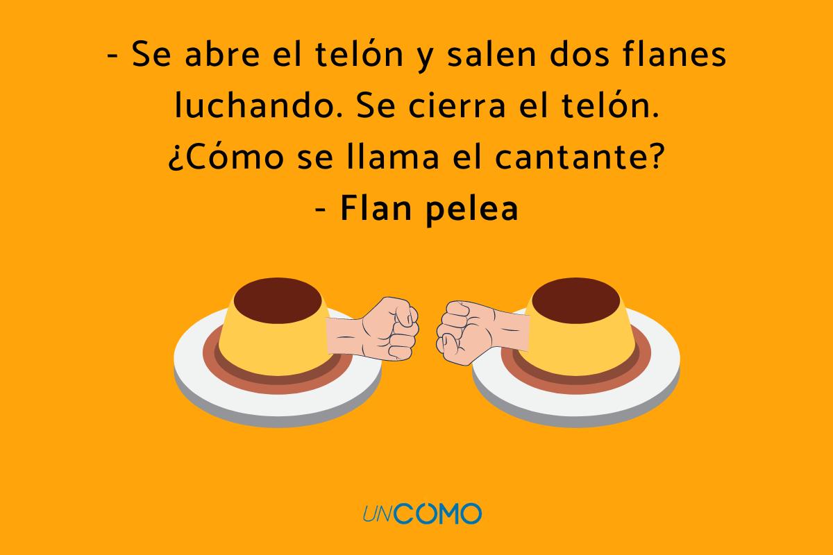 - Se abre el telón y salen dos flanes luchando. Se cierra el telón. ¿Cómo se llama el cantante? Flan pelea (Fran Perea).