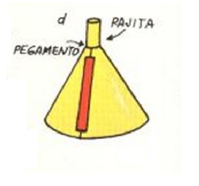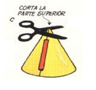Para finalizar introduce la pajita en el borde del agujero para que sobresalga. Pega la pajira al cono y deja que se seque. Una vez este seco ya puedes utilizarlo.