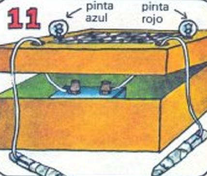 Cómo jugar al juego de encontrar la luz: dos jugadores tiene un lápiz cubierto con papel de estaño cada uno. Uno empieza a la salida roja y el otro a la salida azul. Cuando se toca la salida roja la luz roja se enciende. El jugador entonces intenta encontrar la próxima luz roja moviendo solamente un cuadrado cada vez. Si la luz se enciende el mismo jugador prueba el próximo pasador. Si la luz no se enciende, el jugador prueba otra vez. Si se enciende la luz azul el jugador tiene que volver a la salida otra vez y el otro jugador tiene su torno para probar con la luz azul. El ganador es el que se recorre todo el camino desde la salida a la meta con solamente su luz funcionando. Cuando ya has aprendido los dos caminos desde la salida a la meta, prueba a encontrar el camino de la meta a la salida.