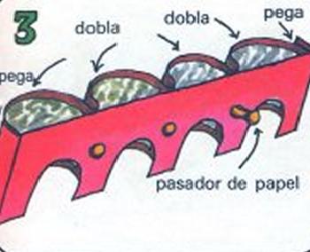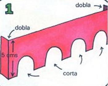 Después pega la cartulina plegada a las tiras de los arcos. Dobla la cartulina plegada para hacer curvas y fija con pasador entre cada arco.
