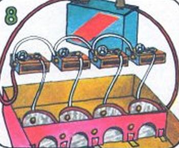 Como se juega: empuja la bolita dentro del cañón de cartulina; tira hacia atrás el lápiz y apunta a uno de los arco. Si la bolita entre un bombilla se enciende. Pinta o escribe números en pedazos pequeños de celofán y enróllalos alrededor de las bombillas. Pégalos con cinta. Para hacer el juego más difícil pega obstáculos en la table. O inventa algunos juegos para ganar puntos. Por ejemplo el primer jugador que marque 20 gana. Pero debe ser 20 y no más. Mira el siguiente artículo de unComo, cómo hacer el juego de la pelota y el tablero