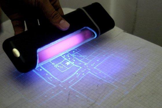 Al mirar el papel con una lámpara de rayos ultravioleta en una habitación oscura, podremos ver aquello que previamente hemos escrito.
