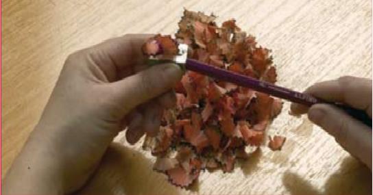 A continuación para hacer el suelo del bosque, afilas los lápices de colores y guardas los restos.