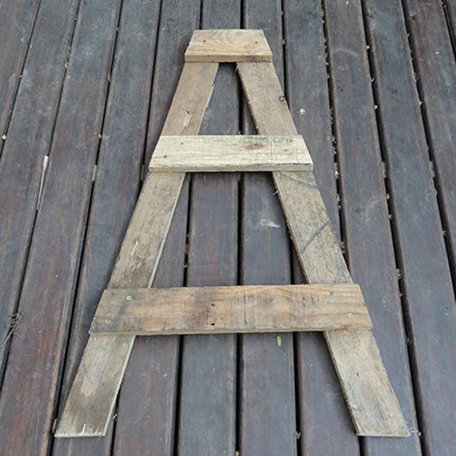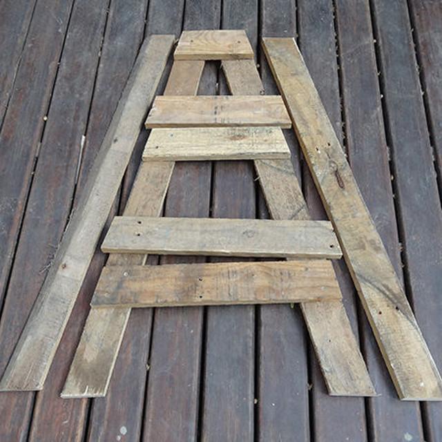 En la parte superior e inferior de cada pata tienes que cortar la madera en un ángulo de 15º. Recuerda que son ángulos que se oponen (tienen pendiente opuesta). Cuando colocas los tablones verás que los 15º te dan un borde recto cuando las tablas se colocan en un ángulo.