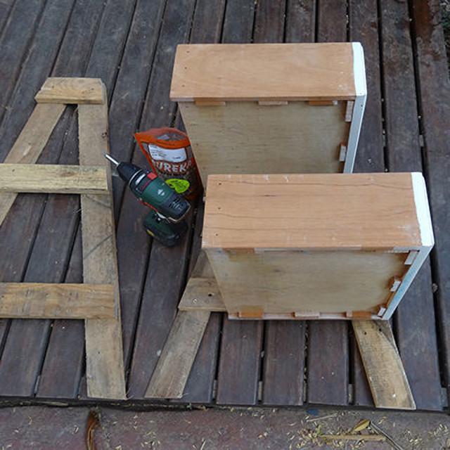 Utiliza tornillos para fijar los travesaños. Con un lado terminado, puedes duplicarlo para hacer el otro. El interior de los cajones tiene que ser rociado con barniz o sellador para crear un sello a prueba de agua y proteger los cajones de la podredumbre.