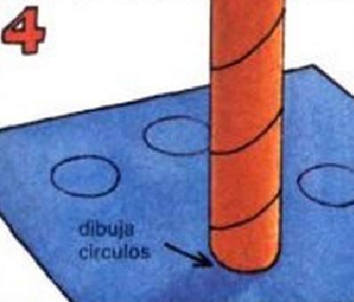 Luego usando la base de un tubo como guía dibuja cuatro círculos sobre el cartón. Recórtalos un poco más grandes de lo que los has dibujados. Pega un círculo a los extremos de cada tubo.